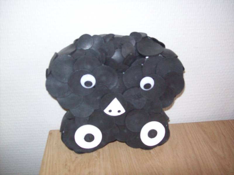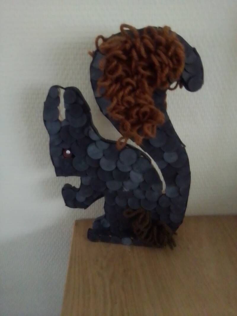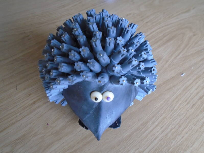 dit was de egel gemaakt van alle dopjes die over waren van de griepspuiten nov 2020