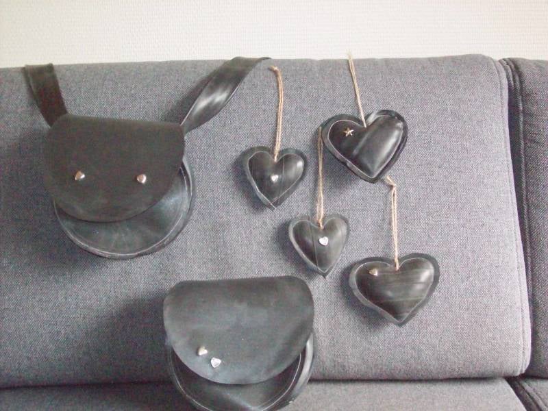 april 2015 weer enkele creaties in combinaties van fietsband, dakleer en soms vijverfolie