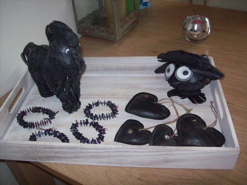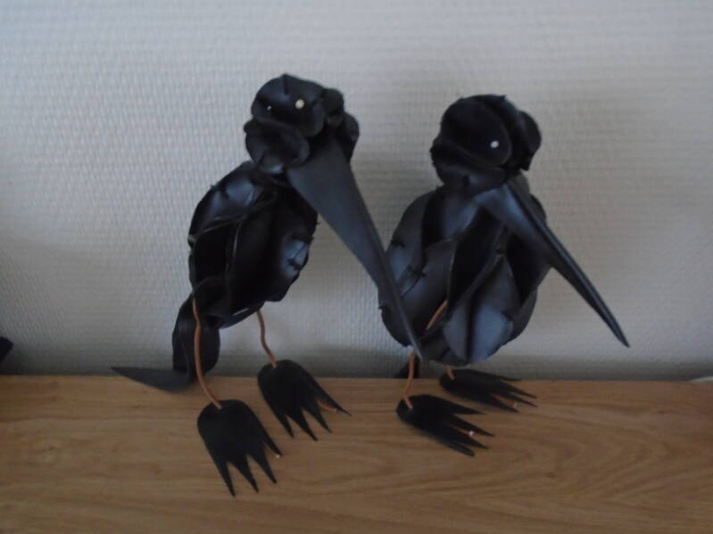 broertjes Raaf, gemaakt van fietsbanden en dakleer