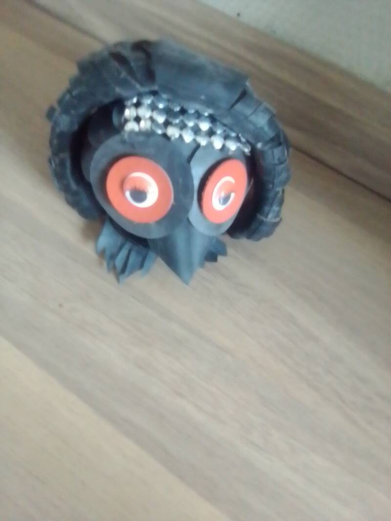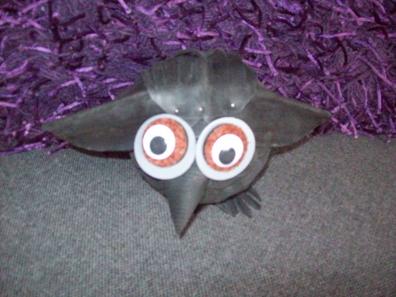 uiltje gemaakt met geverfde blaadjes en wiebeloogjes