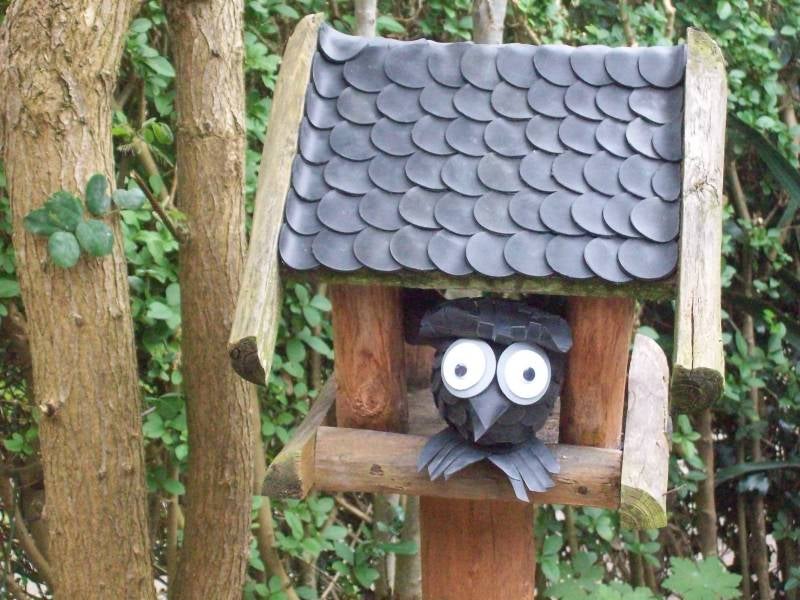 uiltje gemaakt van oude banden en een stukje vijverfolie