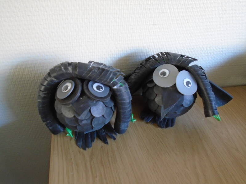 en natuurlijk ook aan aantal raafjes en een kat van fietsband.
