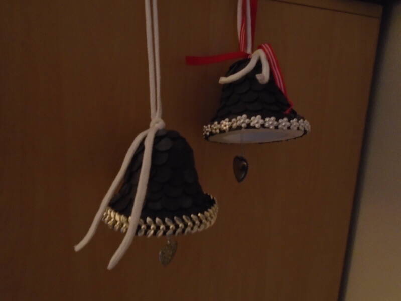 alvast begonnen met de kerstversieringen. groot , klein, met spelden, zonder en gebruik maken van splitpennen om ze vast te zetten. okt 2015