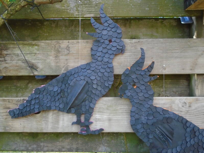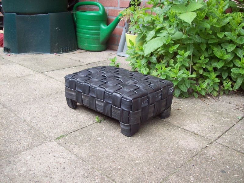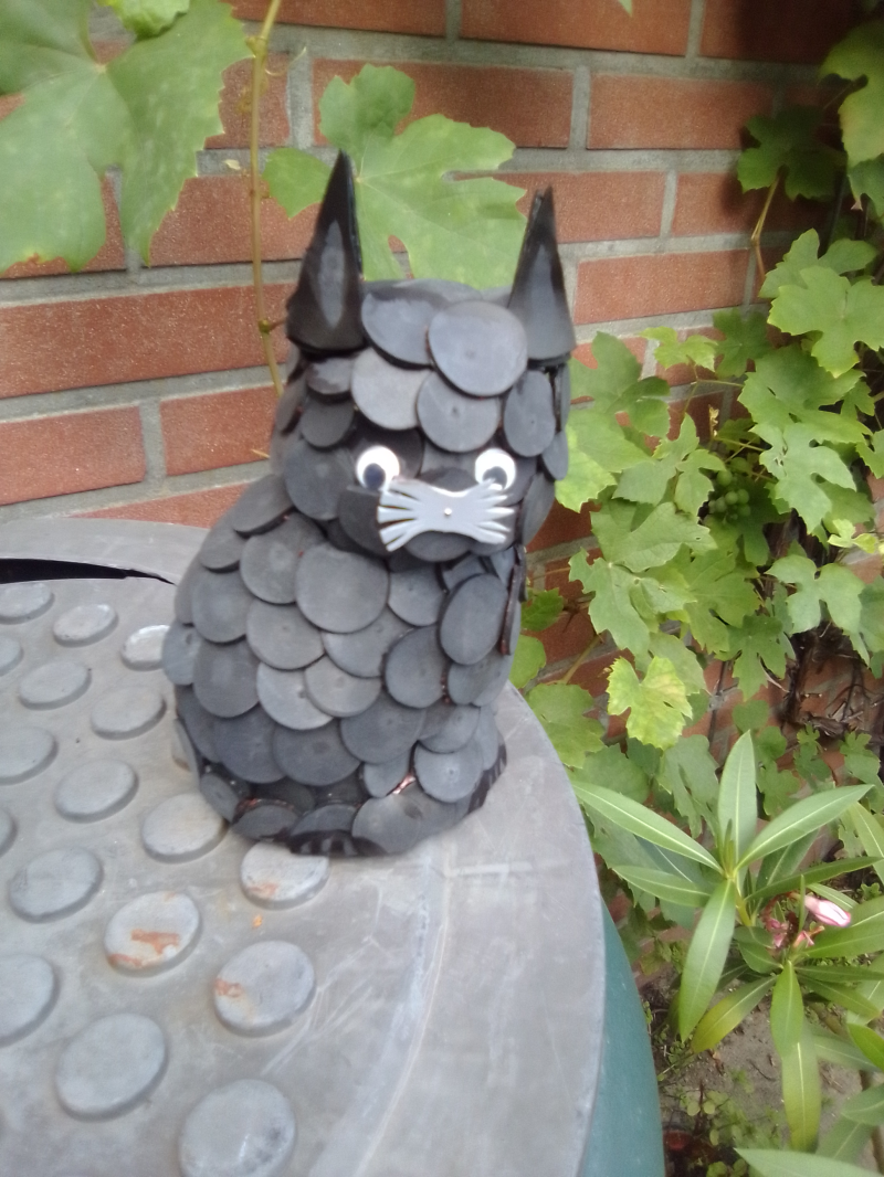 gemaakt van fietsbanden, en stukjes vijverfolie.. om er meer kleur aan te geven
