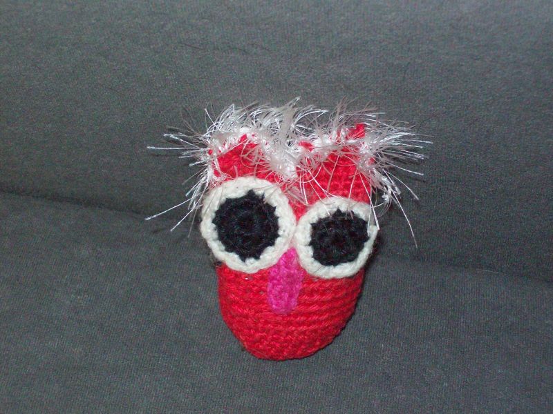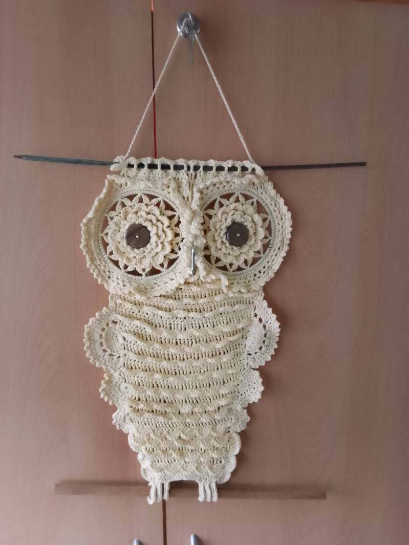 oa krans, omslagdoek, vogeltje gehaakt en natuurlijk nog een bosuiltje van grijze rondjes