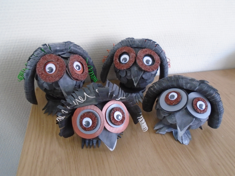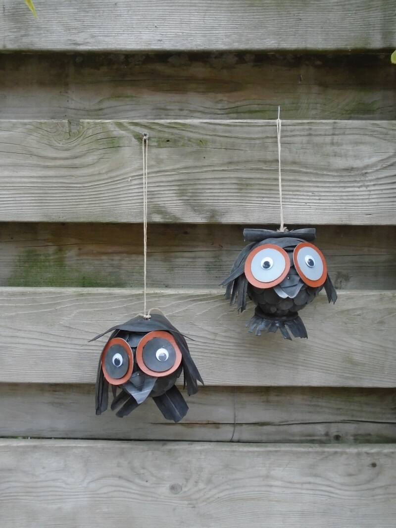 uiltjes gemaakt met fietsbanden en vijverfolie